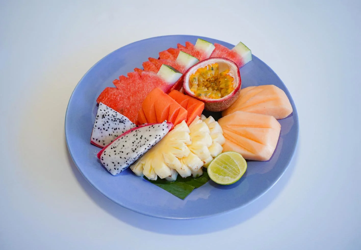 Freshly sliced Phuket pineapple, cantaloup, papaya, dragon fruit and watermelon